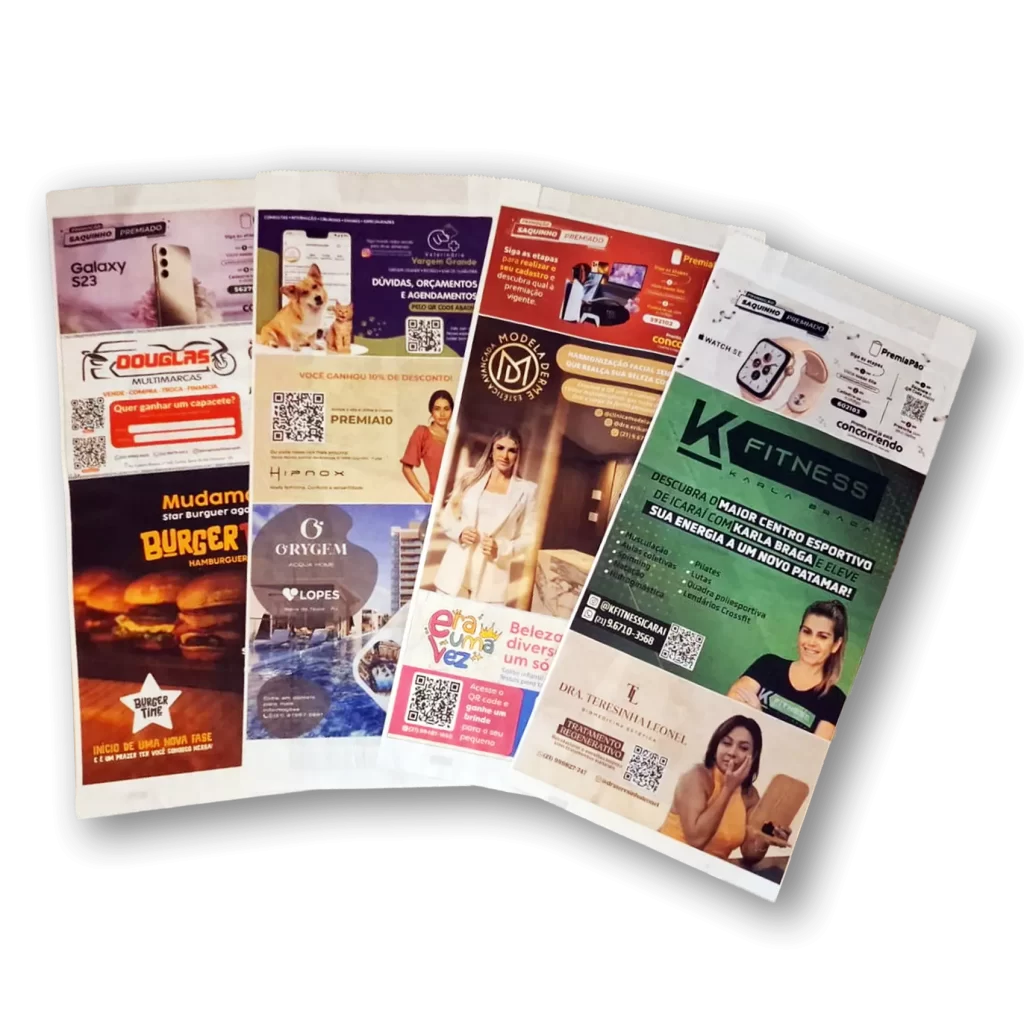 Escolha seu espaço em um dos quadros do saquinho de pão que nós criamos a sua publicidades para alcançar os clientes de alto padrão para o seu negócio